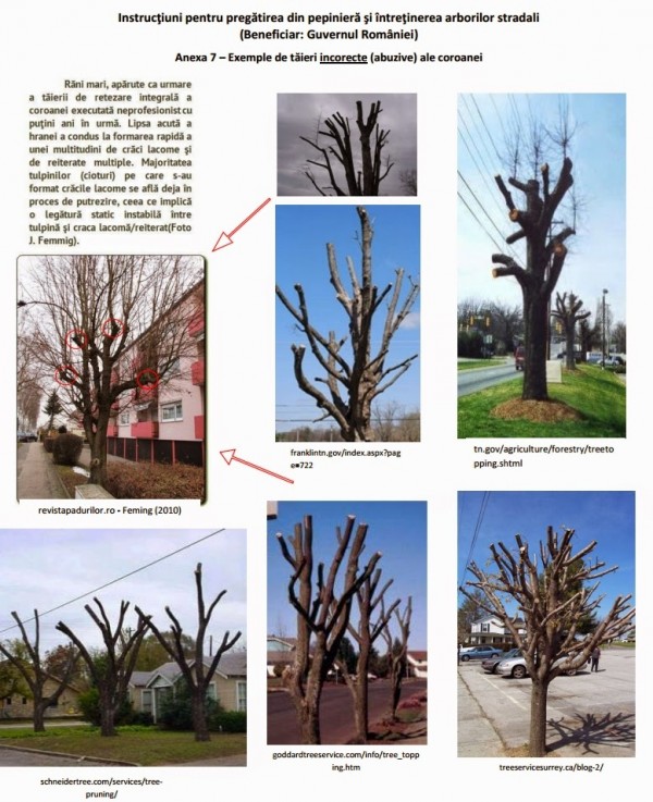 Prin urmare, metodele corecte de îngrijire a arborilor urbani sunt ilustrate mai jos. Ca regulă de bază, se reţine interzicerea tăierii a peste o treime (30%) din coronamentul original al arborelui.