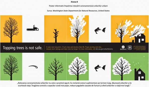 NB: Retezarea anuală a coronamentului arborilor urbani, cu păstrarea trunchiului şi a părţilor bazale ale ramurilor inferioare, este o practică populară, însă nejustificată şi extrem de dăunătoare. Indiferent de specie, această practică afectează negativ starea fitosanitară a arborelui:
