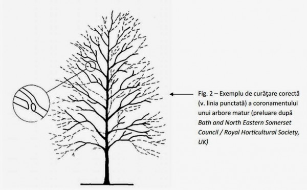 NB: Retezarea anuală a coronamentului arborilor urbani, cu păstrarea trunchiului şi a părţilor bazale ale ramurilor inferioare, este o practică populară, însă nejustificată şi extrem de dăunătoare. Indiferent de specie, această practică afectează negativ starea fitosanitară a arborelui: